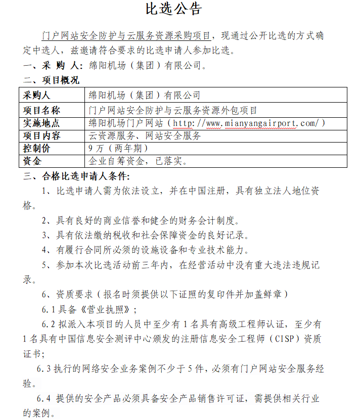 門戶網(wǎng)站安全防護與云服務資源項目采購(第二次)